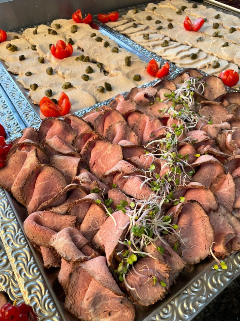 Wählen Sie aus liebevoll zusammengestellten Buffets, warmen Speisen, Fingerfood, Suppen, Salaten und süßen Highlights. Gern berücksichtigen wir auch vegetarische oder vegane Optionen sowie besondere Wünsche.